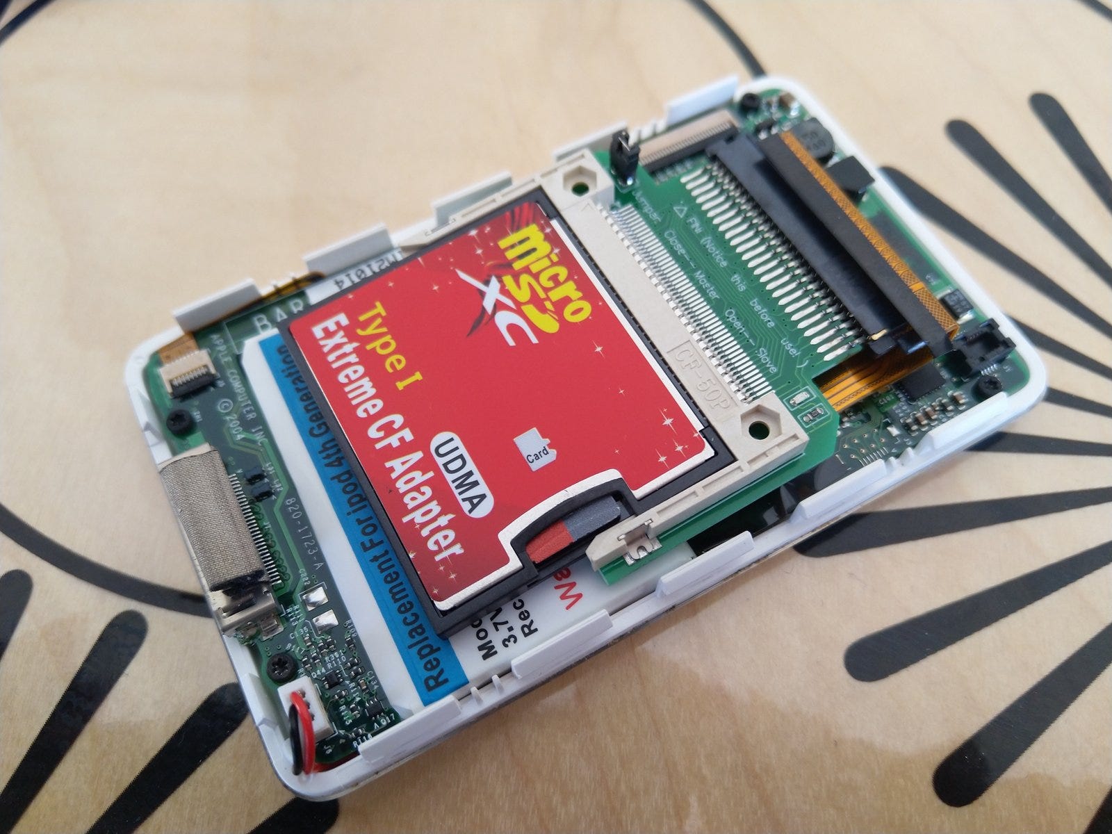 By now, most iPod owners are likely aware of the ability to replace the old, spinning-disk drives in their iPods with flash memory cards. Typically this involves connecting a (Micro) SD or CompactFlash card to the iPod’s IDE interface through a converter like the ones made by iFlash.