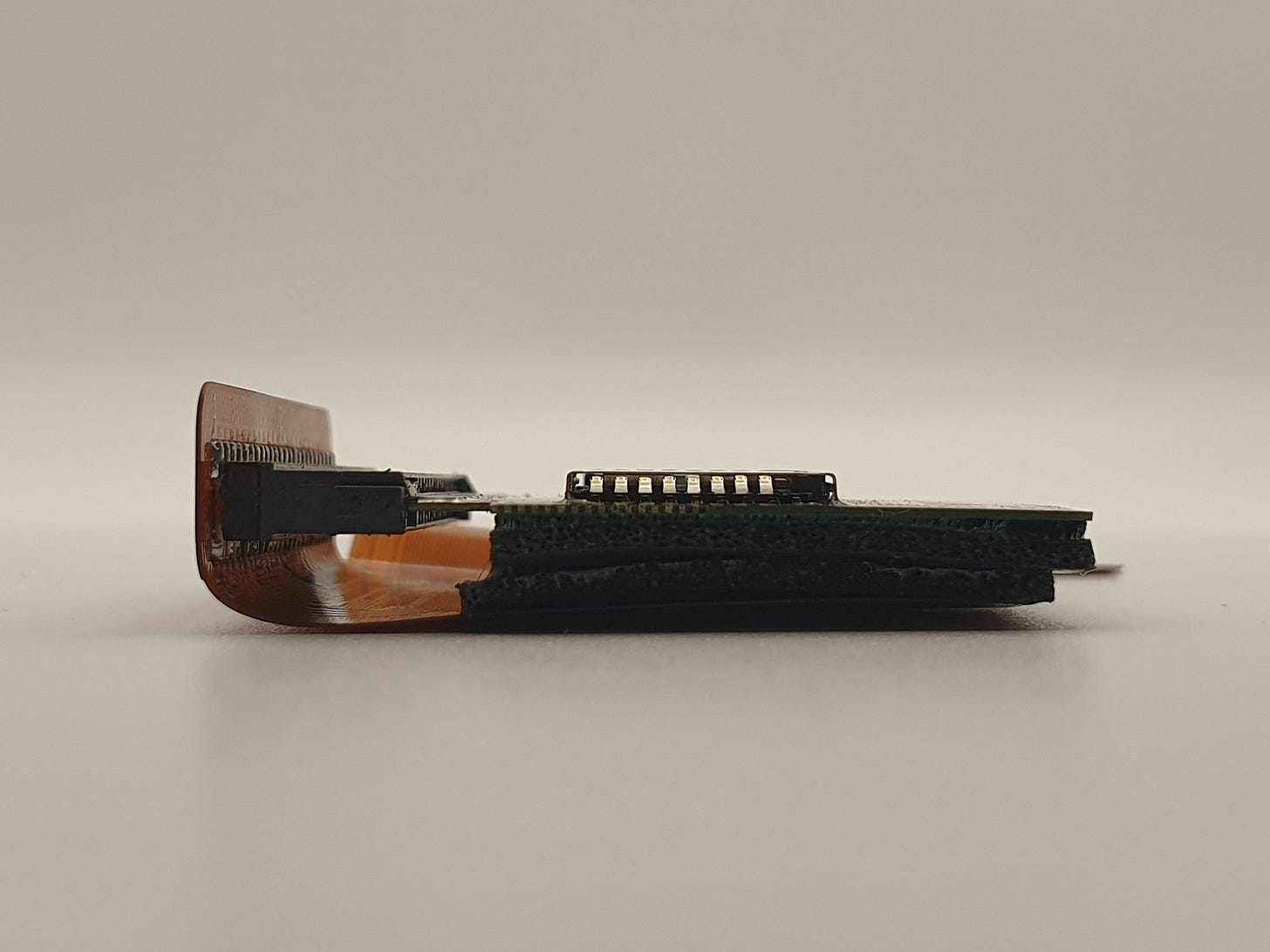 Though this seems like a perfect fit with 0.45mm to spare on the length, we need to keep in mind that we also need to fit a connector and flex PCB in here. The flex thickness is typically no less than 0.3mm with stiffener. This leaves us with 0.15mm for the connector.