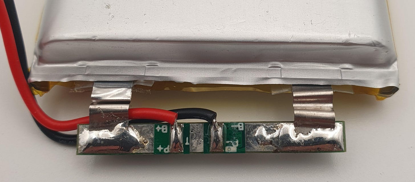 On the battery side of things, I found these 105080, 5000mAh prismatic cells from the usual suspects are virtually a perfect fit for the ‘thick’ back plates.